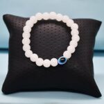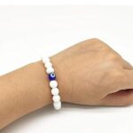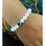 Unisex Evil Eye Hand Bracelet with White Beads for Women and Men